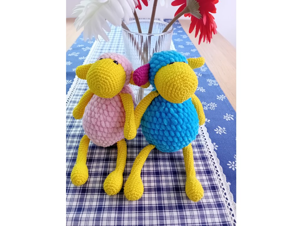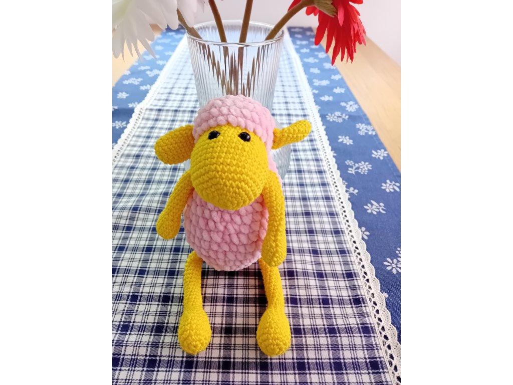 Na omak velice příjemná a muchlavá ovečka je uháčkovaná ze 100 % polyesterové příze a je vyplněna dutým vláknem. Oči jsou bezpečnostní a na výšku má 30 cm.