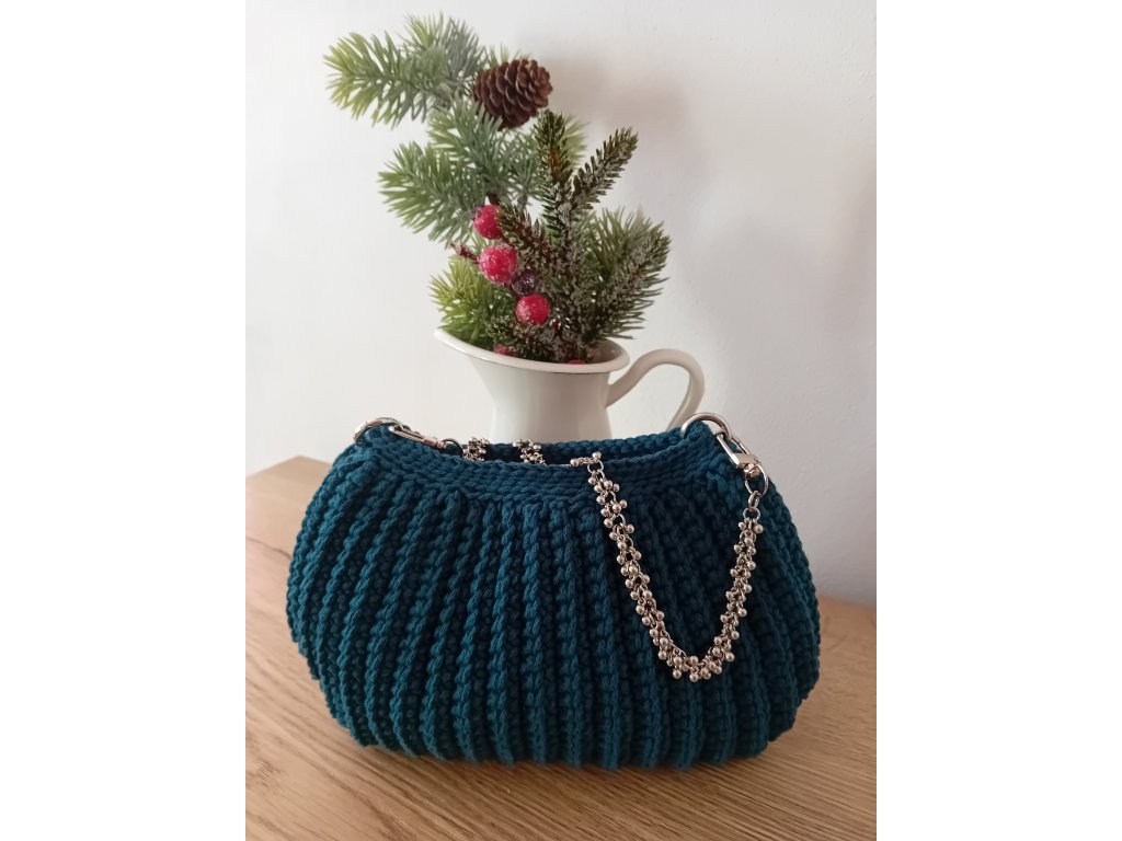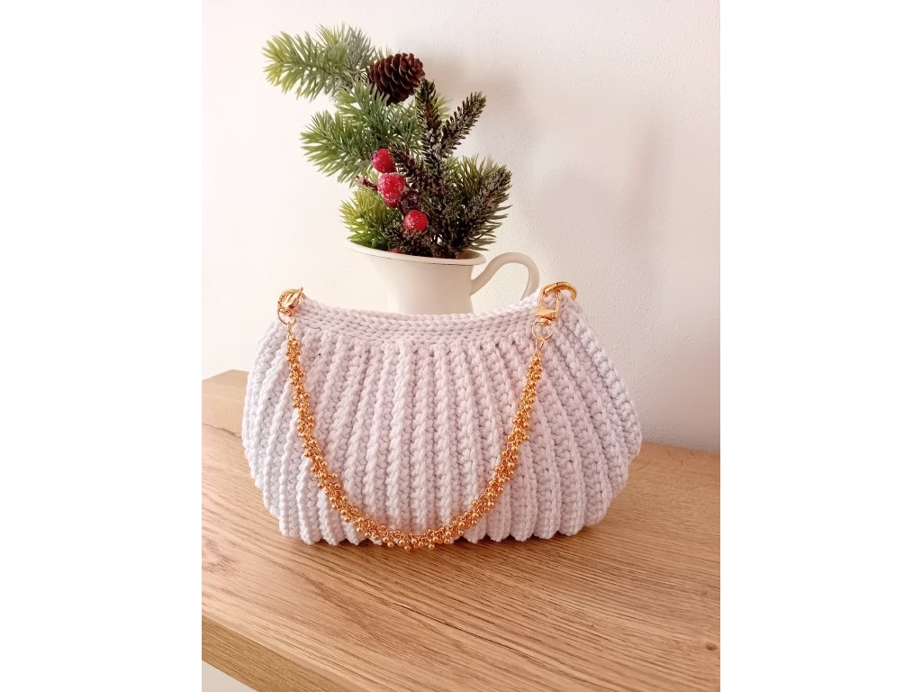 Háčkovaná společenská mini kabelka do ruky. Použitá příze je 85 % bavlna a 15% polyester. Velikost 22 x 16 cm.