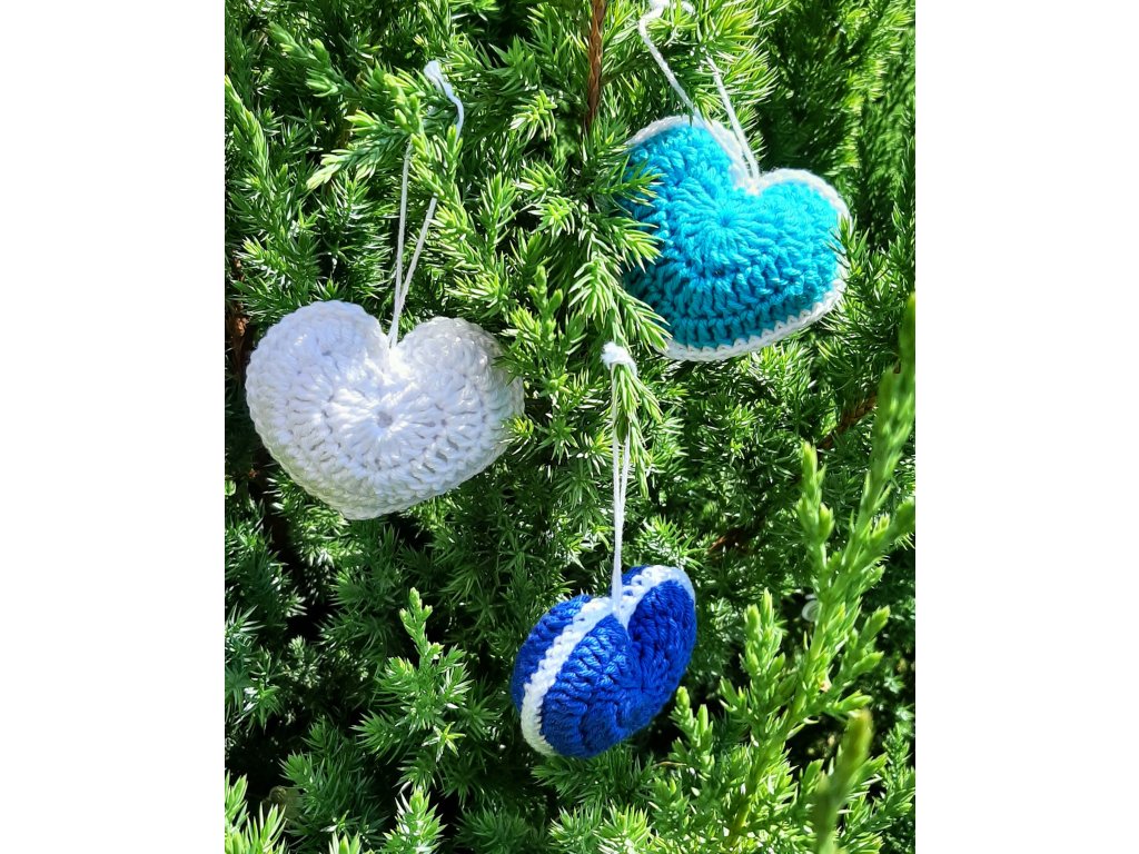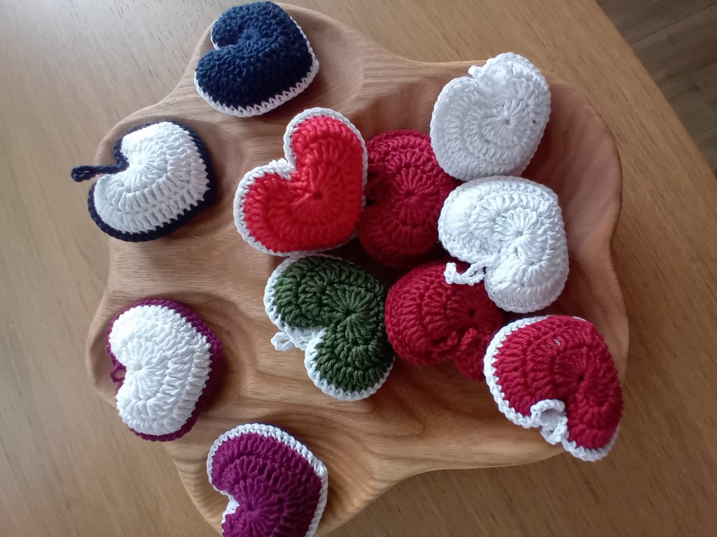 Krásná malá srdíčka mají v průměru velikost 8 cm .Jsou vyrobená ze 100 % bavlny a plněná jsou dutým vláknem. K použití jako klíčenka,ozdoba na kabelku a moc hezky vypadají jako ozdoba na vánočním stromečku. Vyrábím je v různých barvách. Napište si o jakou máte zájem.