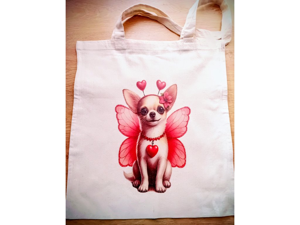 Bavlněná taška se zamilovaným motivem. Velikost 42x 38 cm, délka uší je cca 70 cm. Gramáž tašky je 144g/m2. Barva podkladu je natural a taška má cetrifikaci Oeko-Tex/SA 8000. Rádi k obrázkům vytiskneme i popisek se jménem na přání.